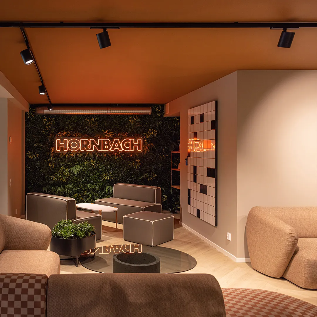En plats där vi nu inte bara kan, utan VILL samlas. TILLSAMMANS. Ett kontor där platser för lugn enskild arbetsro nu varvas med öppna ytor för kreativt samarbete & mysiga soffhörnor för en kafferast eller spontan tankesmedja. Därtill ett stort utbud av kreativt inredda grupprum där första fröet 🌱 till en idé kan utvecklas till ett fantastiskt slutprojekt! – Det kallar vi den sanna ”HORNBACH-andan”. 🔨